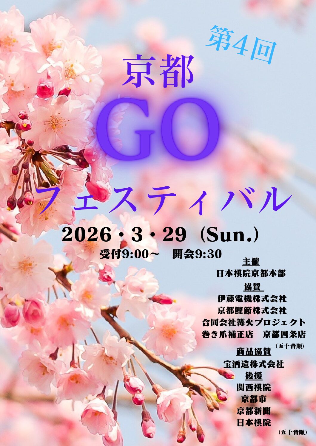 京都で囲碁を楽しめる恒例イベント、「第4回 京都GOフェスティバル」が、2026年3月29日(日)に…