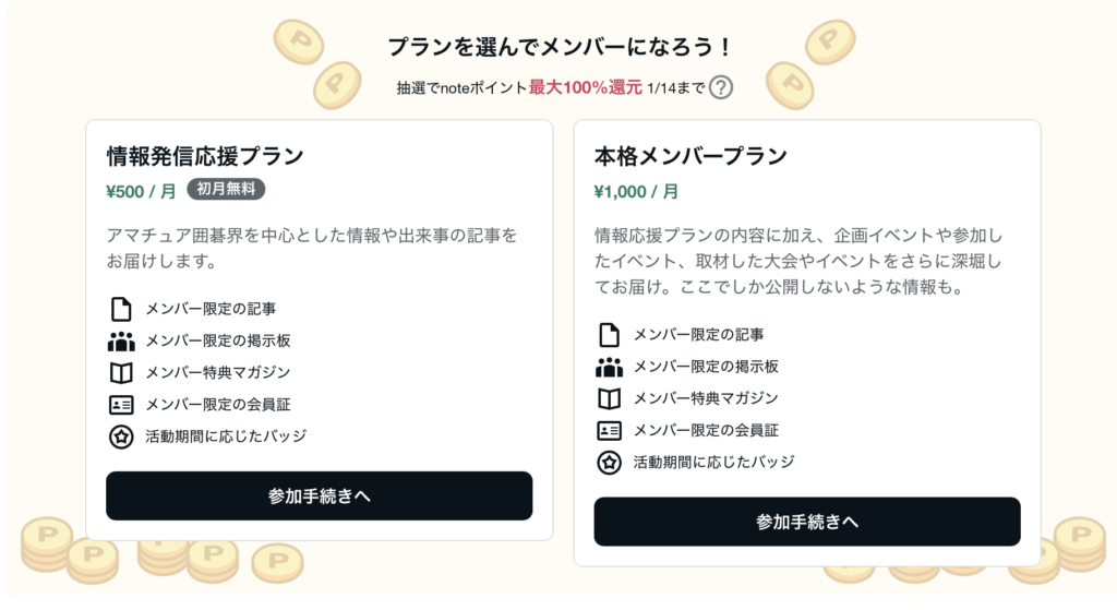 ・本格メンバープラン(¥1,000/月):上記に加え、イベントや取材内容の深掘り等